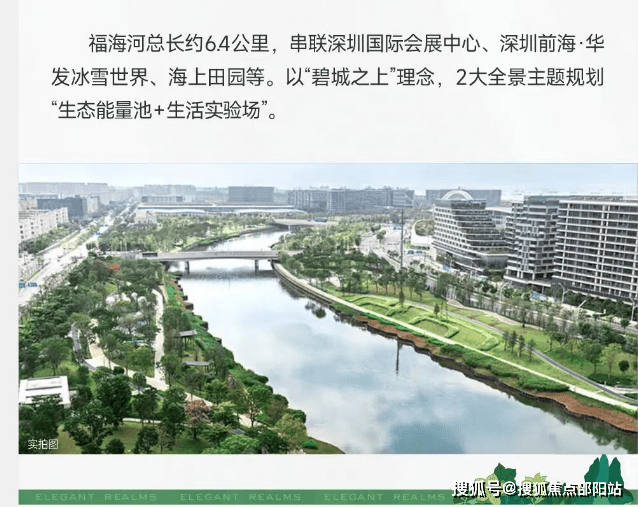 项目毗邻约6.4公里会展河,纵贯会展新城南北,政府规划将其打造为深圳国际会展城的中央水花园,分为5大水岸主题分区,南地块2-5栋中高楼层可直面会展河景观带,低楼层俯瞰社区园林,推窗即见河景风光[2][6][7]。周边还有约1.6公里滨水休闲带——会展公园,总投资超过20亿,规划打造为深圳极具科技感的休闲目的地,是日常慢跑、散步、亲子互动的绝佳去处