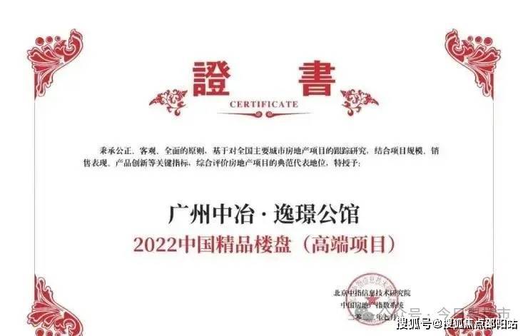 2022年7月7日,中冶 · 逸璟公馆荣获中指院“2022中国精品楼盘TOP1(高端项目)”。