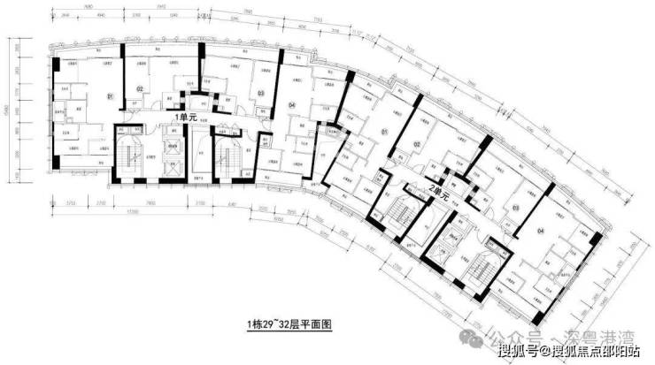 两梯四户,两个单元,平面图: