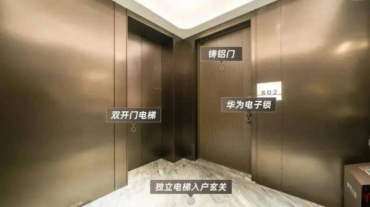 双开门电梯,带来往常大平层才会拥有的独立入户+尊享电梯厅空间,形成归家仪式感与功能性的扩展。