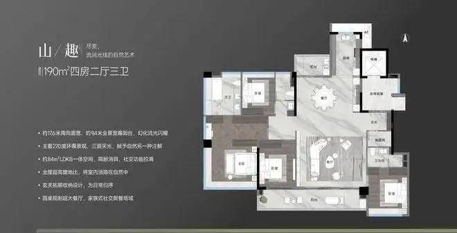 全屋不仅做到南北对流,更拉开约11.6米的南向面宽,能与凯旋新世界观樾尊府约200平大平层(约11.7米)相媲美。