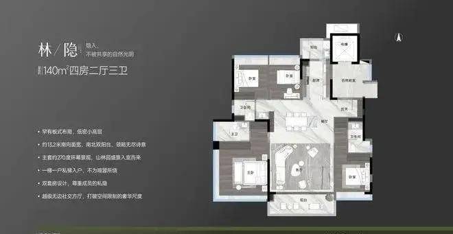 约17米南向面宽,全屋超高窗地比,全南向功能房,主套约270度IMAX级环幕视野