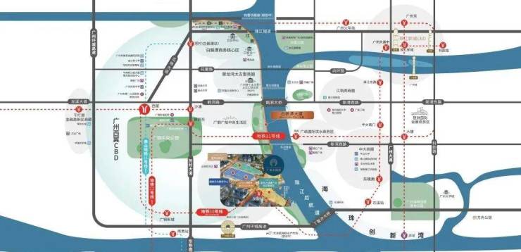 地铁:周边10、11、22号线(在建中)三地铁交汇,其中距离10号线东沙站仅约600米(预计2024年底开通),串联天河白云越秀荔湾和海珠区,连接广州火车站、广州东站等大型交通枢纽,便捷出行;