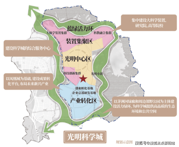 ◇ 大湾区与先行示范区双区政策驱动下的深圳,光明作为深圳建设综合性国家科学中心,南接南山科技园、北联东莞松山湖、占据中国科创发展大动脉,担当粤港澳大湾区的重要战略节点,“中国新硅谷”蓄势待发。