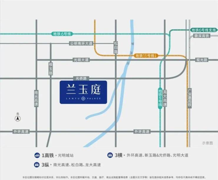 地铁配套:兰玉庭出门就是光明主干道光侨路,快速接驳深圳外环高速,南光高速,还有松白路半小时就可以直达南山西丽,当前最近的6号地铁线“长圳站”距离约5公里,后期周边规划有18/29号地铁线“根玉路站”在附近,具体站点不详,其中29号线一期已经启动招标。