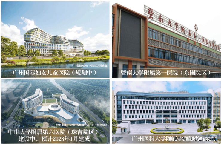 ✔2 公里内社区卫生服务中心,5公里内共计4所三甲医院+4所公立综合性医院(数据来源:天河区人民政府、广州自然规划局;距离来源:百度地图测距)