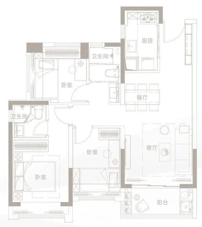 建面约79㎡ 3房2厅1卫