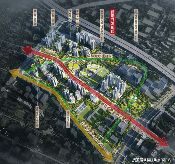 在生态宜居上,片区两轴一环生态界面,规划四大公园,打造开放立体城市,升级打造约2.6万平方米黄边艺术公园,让诗意与生活交融,让居住成为一种度假式享受。