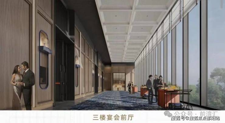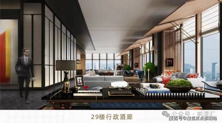设计将行政酒廊布置于酒店顶部,在天际行政酒廊可俯瞰前海湾璀璨盛景,顶部的架空层将自然景观引入,提供层次丰富的观景空间体验,塑造项目的标志亮点。