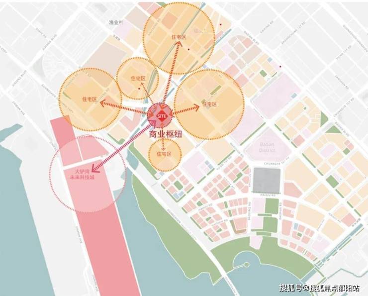 基地坐落于宝安中心区,地理位置优越,位于主次干道交汇节点,是连接宝安中心区和大铲湾未来科技城重要的城市节点。项目在这里扮演着公共水体与私密绿化之间过渡的角色。