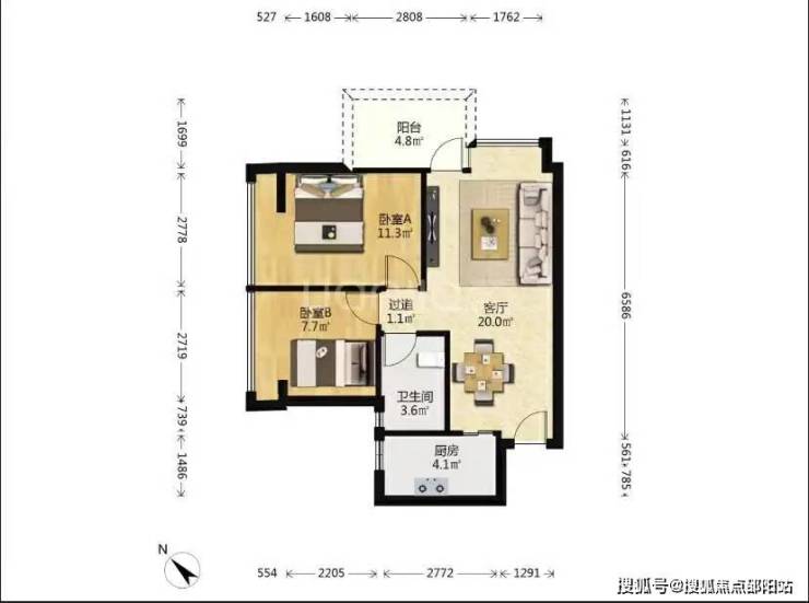 太古城南区62㎡的户型实际套内实用面积在51㎡左右,精致的小两房设计。