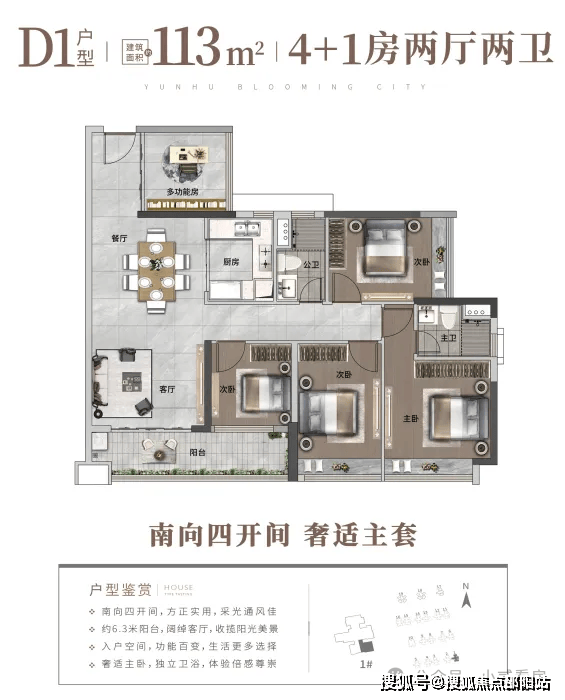 高性价比的全龄段人居N+1户型,户型涵盖约70-140㎡三-六房。