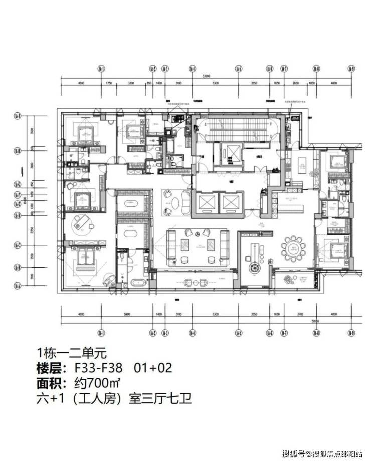 01+02户型 约700㎡ 六房三厅七卫