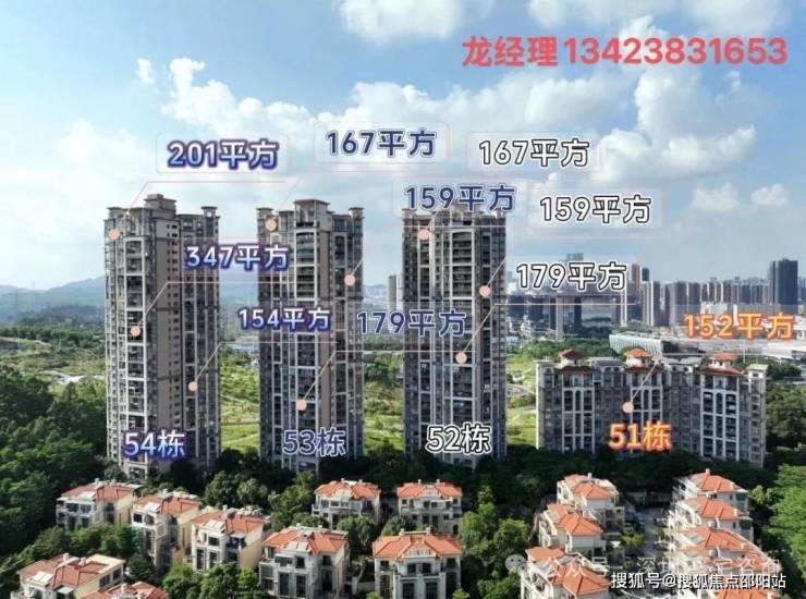高层有52,53,55栋,两梯三户,其中52,53栋面积158-179平四到五房,55栋两梯三户,面积154-201大平层和347平复式