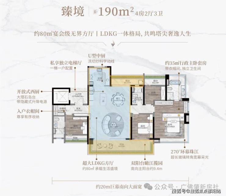 豪宅标配方正格局全四房,约100%使用率,LDKG大方厅,国际品牌奢装,270°主卧环幕观景,引领新一代豪宅典范。
