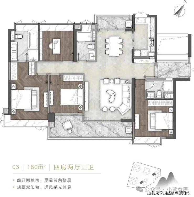 【A1-03】 建筑面积约180㎡四房两厅三卫