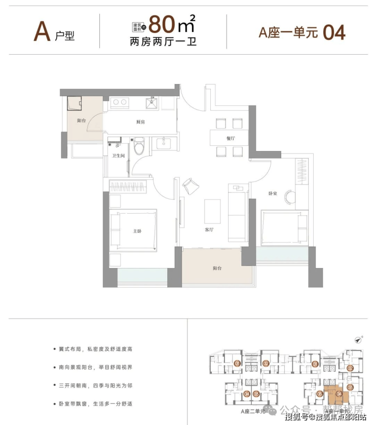 以约80-144㎡2-4房天幕奢居,回应城市先见者的至极向往;以四梯四户/四梯五户、丰富多元的户型构成、方正舒适的空间设计及户户双阳台等,成就共鸣时代的中芯圈层首选奢雅住区。