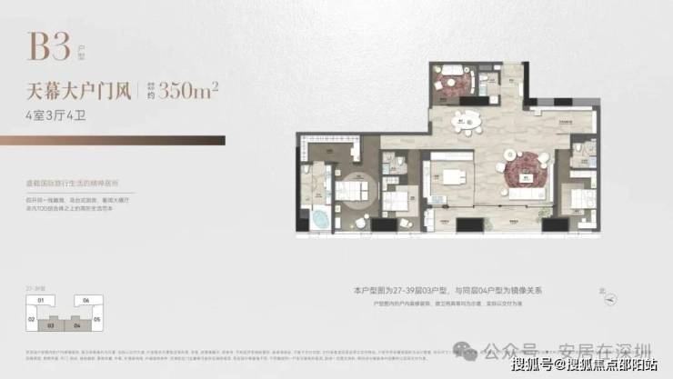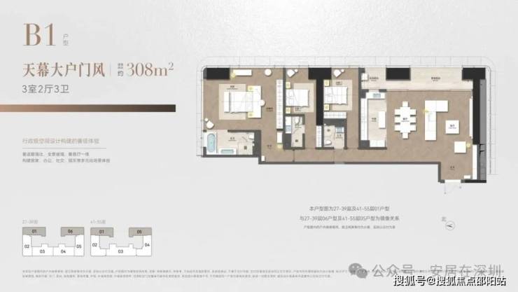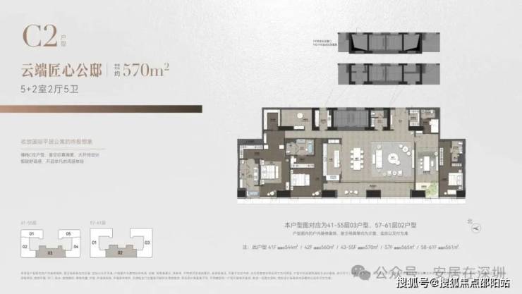 总楼层:公寓约300户,58层,层高3.6--3.9米