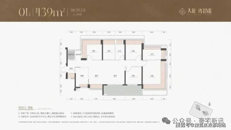 约80%南向全明大面宽户型,全屋环绕式采光面,盛满一室阳光;约6.3-6.8m阔景大阳台,晨间瑜伽、午茶瞰海、暮色小酌,海幕星空自成生活背景;海景星级套卧,270°环幕自在观景,享受头排海景盛宴。
