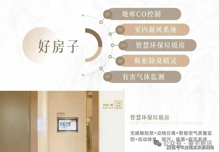 新风系统、智慧垃圾房等配置,从户内到小区,全方位净化监测+清新除菌+绿色投放,无忧呼吸。