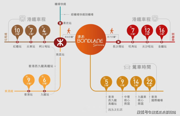 项目坐拥双站三线之便,距离港铁南昌站约6分钟步程,距离长沙湾港铁站约7分钟步程,即可乘搭束涌线、屯马线及荃湾线,瞬抵港九新界多区,尽享铁路无缝连。从“连方BONDLANE”系列出发,经完善纵横之干道驾车往西九龙高铁站约5分钟,往中环约9分,往场约22分钟。穿梭全港,连接世界更便捷。