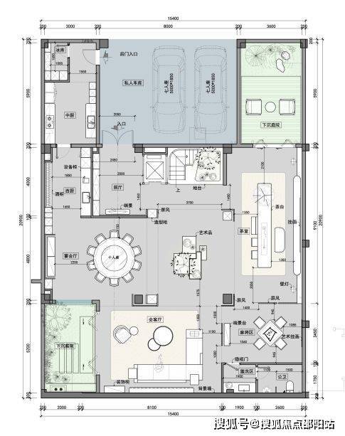 负一层下沉庭院周边设工人房、家政间,储物无忧;
