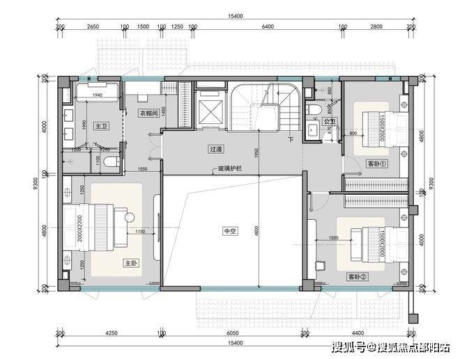二层卧室布局错落有致,挑空区丰富空间层次;