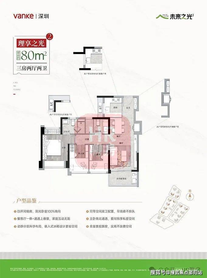 建面约80㎡A户型3房2卫