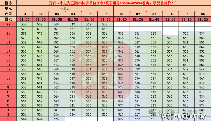 20栋一单元、二单元折后价格表: