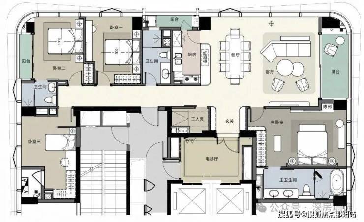 • 三阳台设计,亲海阳台总面宽超12米
