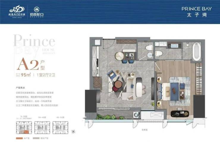 太子湾片区规划总建筑面积约170万㎡,总占地约69万㎡,汇集办公、居住、商业、艺术中心、酒店等多元业态。以“一湾三坊城中城”概念打造布局,在独一无二的太子湾滨海区,汲取山、海、城三大元素,构建高端“居住坊”、“商业坊”、“港务坊”。凭借独树一帜的规划与强大的枢纽功能,成就高端元素集萃纷呈的“城中之城。