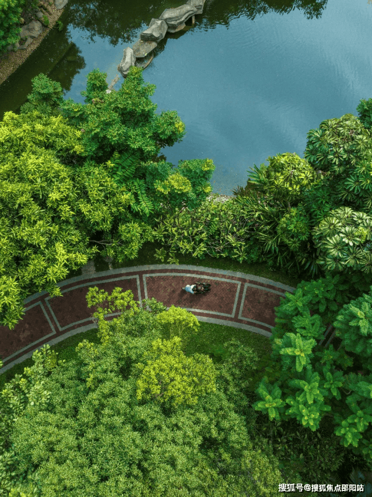项目内部打造了一条沿着台地蜿蜒的溪流,该水系为市面罕见的活水溪流,贯穿整个社区园林,依据溪岸的曲直不同和地形变化,打造叠水、溪流、瀑布、水潭等多样特色水景,溪岸植物种类繁多,与水流互为风景,沿岸专门设置不同的亲水平台,营造自然灵动的栖心之境。