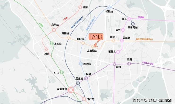 1. 地铁网络:百米生活圈的便捷项目直线距离规划中的地铁25号线上油松站仅约100米,堪称“真正的地铁盘”。25号线作为串联宝安、龙华、龙岗与罗湖的动脉,更与4号线、22号线、27号线形成“一站一换乘”枢纽网: