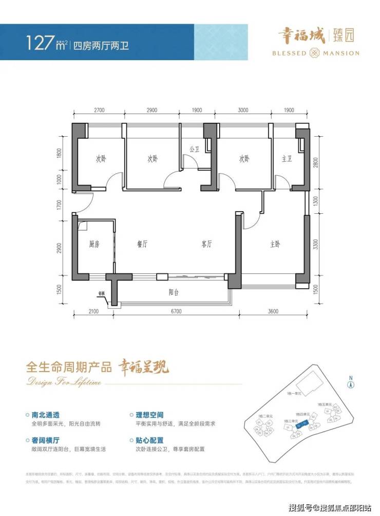 横厅南北通透,6.3米客餐厅,8飘窗,得房率84.87-87.1%,主朝西南/东南。