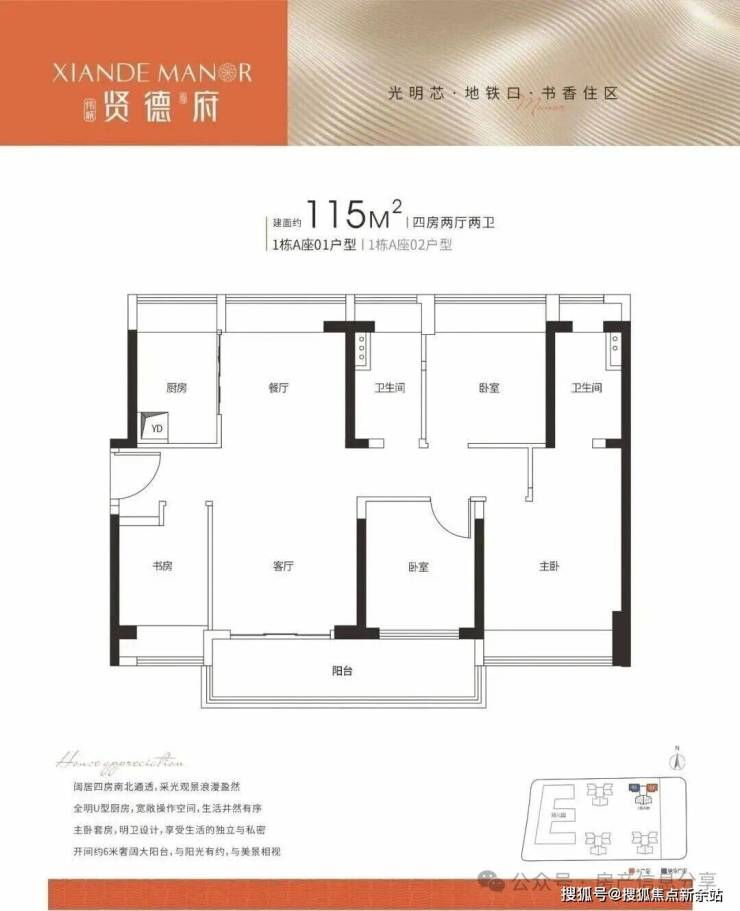 115㎡ 4房2厅2卫竖厅南北对流、餐客分离,主次卧均带飘窗、最大化延伸居住空间,超大阳台拥有更佳的采光和景观视野。