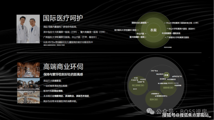 医院:周边 3km 范围内有 5 个一级及以上医院,周边覆盖 7 家综合性医院,包括三甲医院中大附属第一医院、暨大附属第一医院等,还有中山六院及 6.9 万㎡国际妇女儿童医院(规划中)