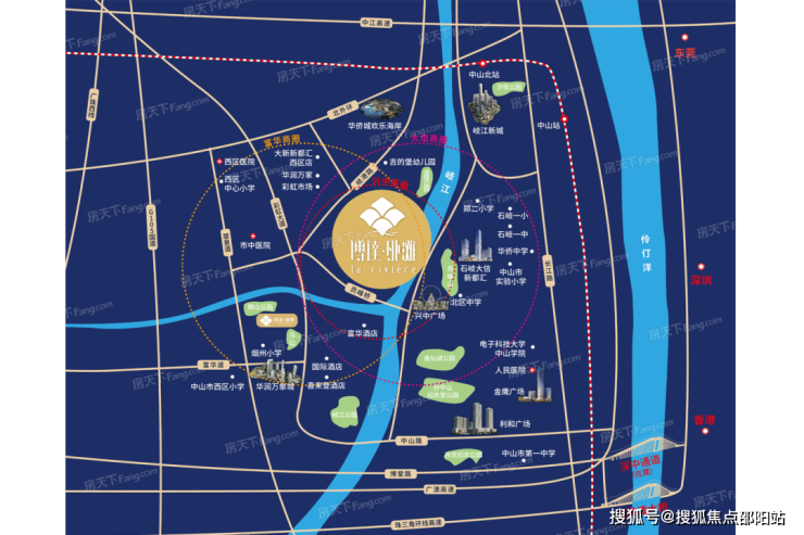 项目地处政府重点打造的“一河两岸”工程新城市板块,未来十二五规划岐江新城核心辐射区域,片区“马山”旧改区将建设集商业、文化休闲、娱乐观赏等景观功能,核聚人口达20万,是中山未来城市发展的强劲区域。