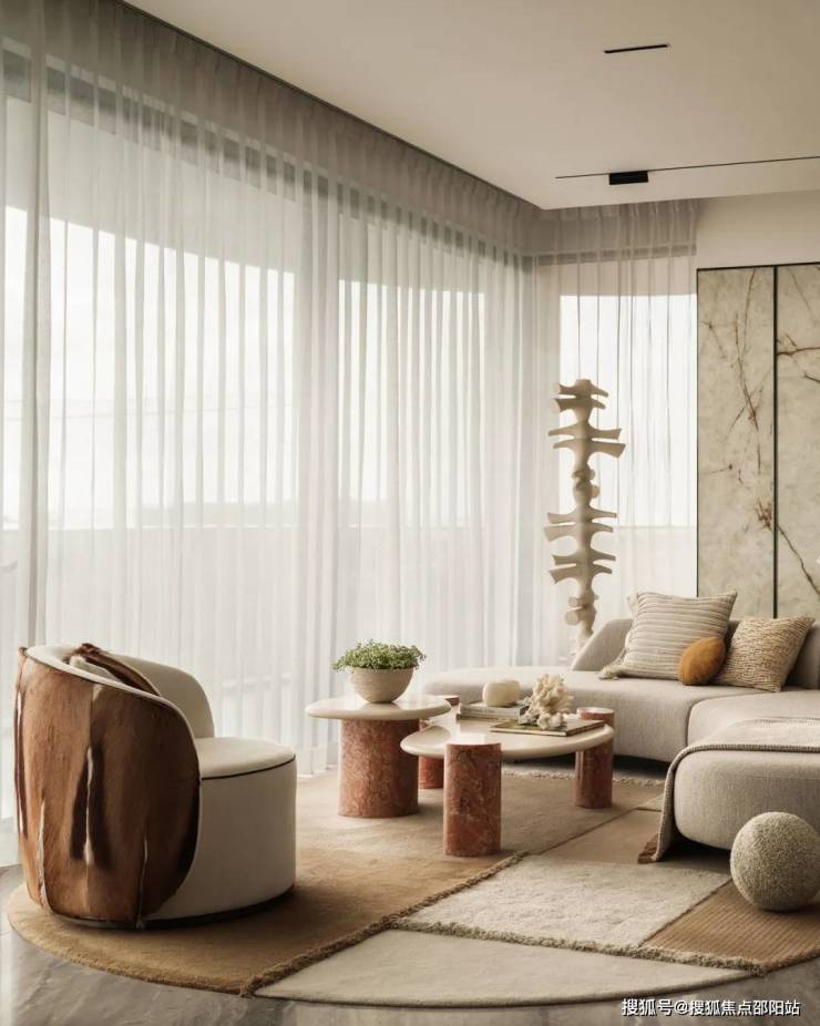 2.4米以上进深的转角阳台结合270°转角无柱落地推拉门。实现建筑内外空间边界模糊与消失,强调空间的流动感;