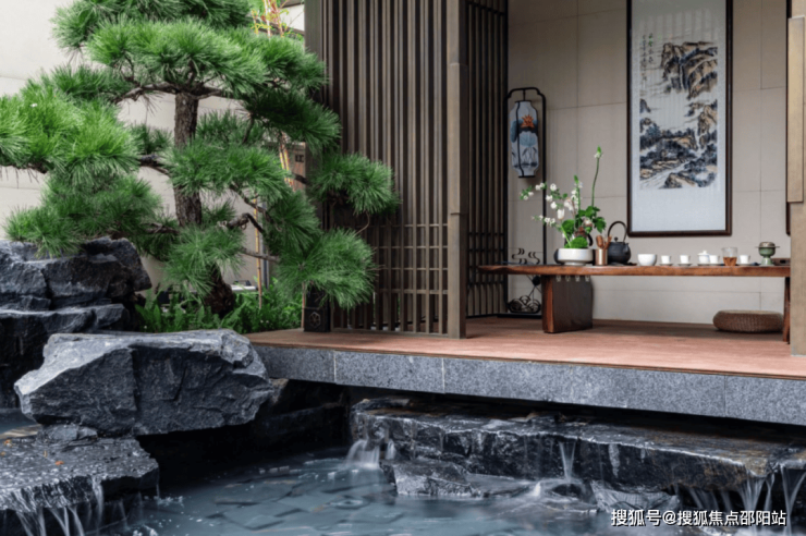 光是约200-350㎡的首层花园,尺度就足以让人惊叹。正方摒弃夸张的堆砌,借景天地自然,将名贵树种、观景鱼池、茶艺室等元素融入其中,极具美感与意韵。