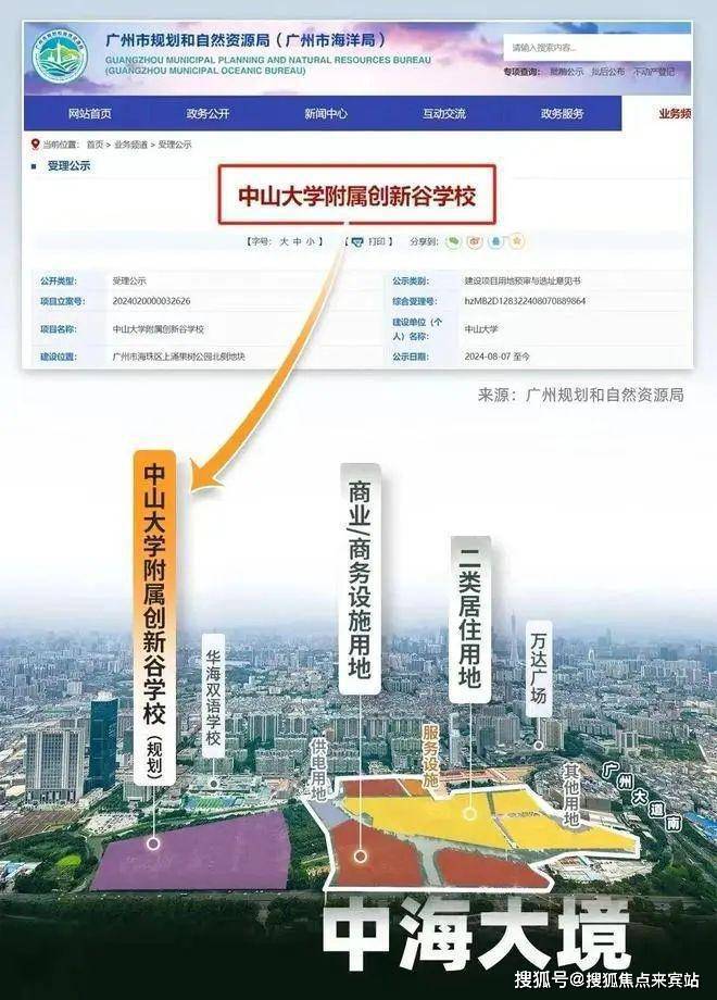 项目在教育配套上极具吸引力。地块西侧规划了 15 年的教育资源地块,由政府引进中大附中办学,涵盖一个托儿所、一个 6 班幼儿园、一个 18 班小学和一个 72 班完全中学,目标是打造广州市综合排名前 5 的学校