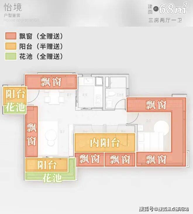 户型面积:提供68-110㎡的三房户型,满足不同购房需求