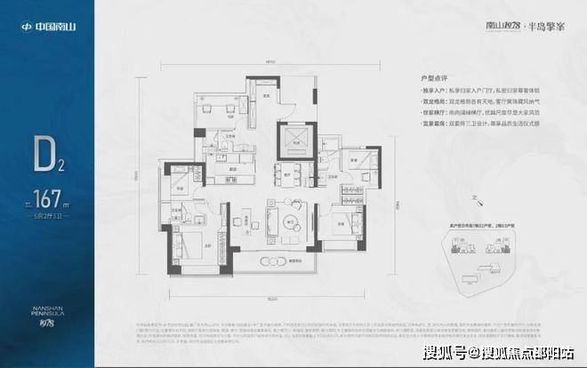 167㎡的5房2厅3卫,1栋02/2栋03高区户型,电梯入户送独立公区,设计的是竖厅双龙抱珠格局,四开间朝南,超宽敞客厅巨幕阳台,主卧大套间设计,U型厨房,双公卫三段式分离,西南朝向。