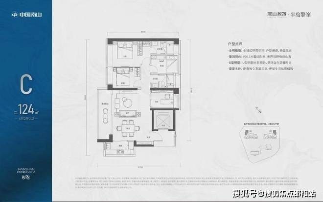 124㎡的4房2厅2卫,1栋01/2栋05户型,电梯入户送独立公区,设计的是横厅南北通透格局,客餐厅6.1米开间,LDKB一体化设计,五开间朝南,主卧大套间设计,6.1米长观景大阳台,U型厨房,公卫三段式分离,西北或东南朝向。