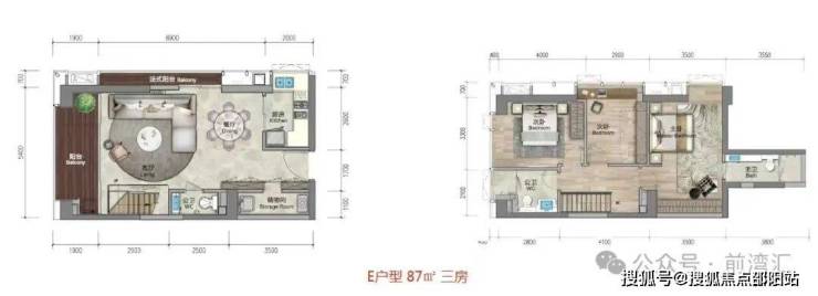 约87—88㎡ 两房/三房两厅三卫