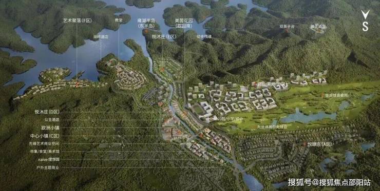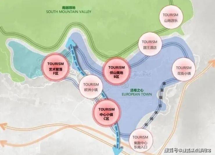 项目重点建设中心小镇C区、艺术聚落F区、伴山美地B区三大园区,并串联现状山地游乐、国王酒店、欧洲小镇与集散中心。