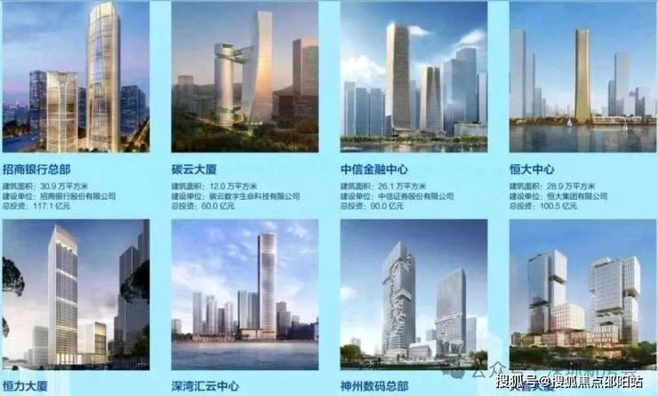 深超总片区现已开工项目16个,深湾汇云中心、神州数码集团总部、天音大厦、中国电子总部主体结构已封顶,中信金融中心、中兴通讯总部、OPPO国际总部、招商银行总部、碳云大厦等项目已进入主体施工阶段。世界500强企业总部争先进驻,是深圳未来最有发展潜力的区域,俨然深圳走向全球城市的名片。