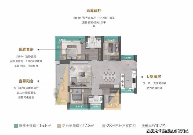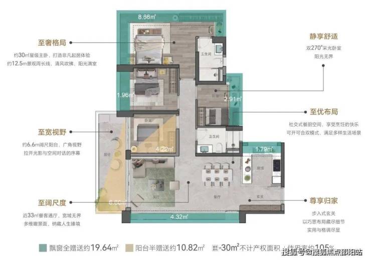 ②约16㎡南向瞰景阳台,约7.2m阔绰面宽,超越同级标准