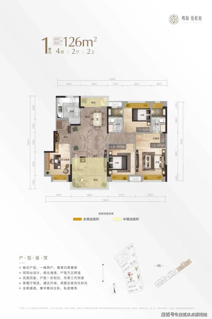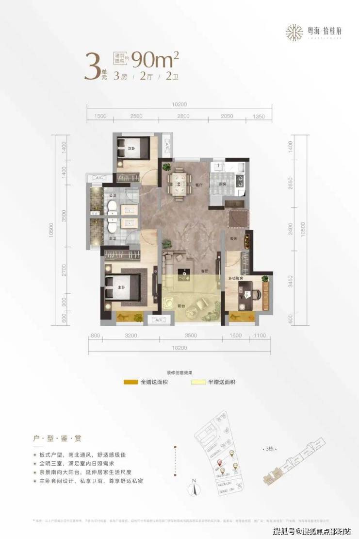 (2)超宽视野享受璀璨美景,东面及南面远瞰市民艺术中心和金湾商都繁华夜景;绝佳的通风效果带来园林秘境释放的纯粹鲜氧。