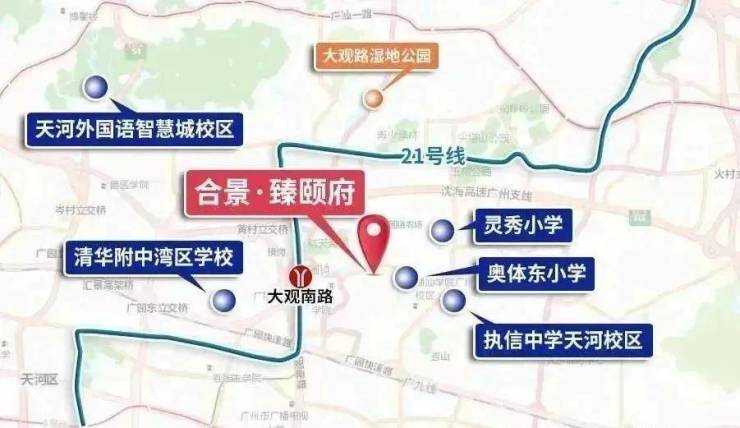中学:执信中学天河校区、清华大学附属中学湾区学校、华师附外美式高中、广州奥林匹克中学、华南师范大学附属外国语学校。