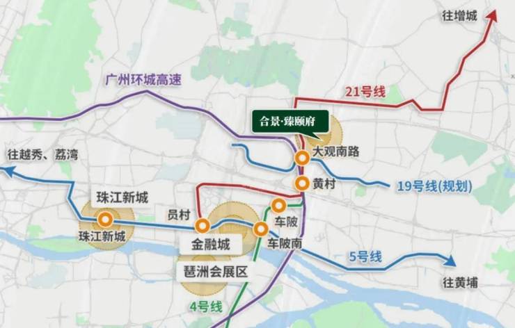 地铁19号线大观南站(规划中,2025年开通)——全长约34.2KM,覆盖广佛衔接通道。